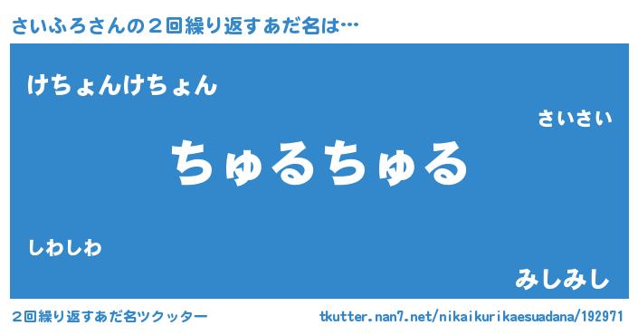 | ヘコむあだ名 | 『さいふろ(小並感)』『さいにー』 |