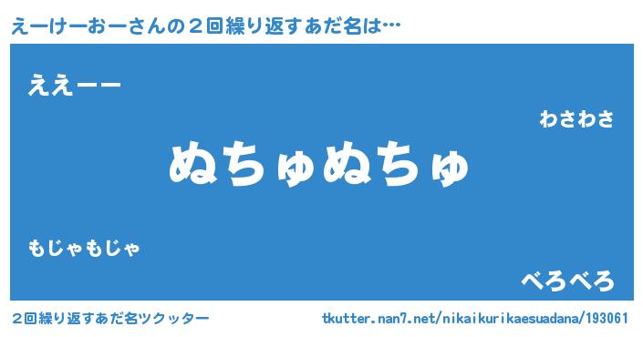 | 欧米人風あだ名 | 『ウサインえーけーおー』 |