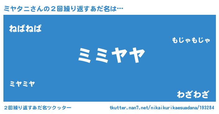 | 欧米人風あだ名 | 『ミヤタニクリステル』 |