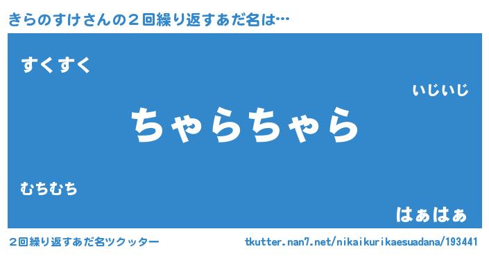 | 意味不明あだ名 | 『住所不定無職きらのすけ(79歳)』 |