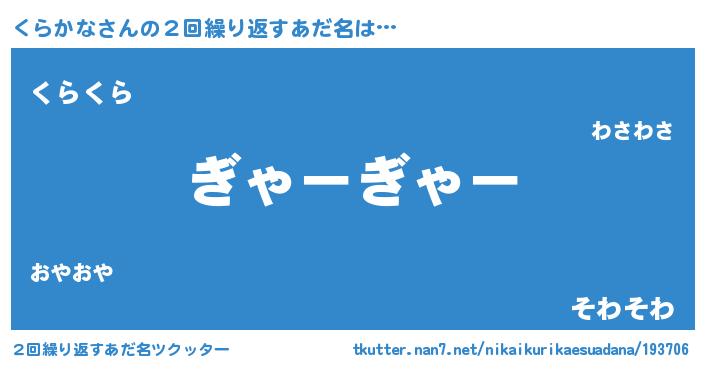 | 男性向けラノベタイトル風あだ名 | 『くらかなという概念が存在しない退屈な世界 』 |