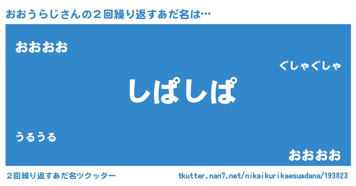 | 意味不明あだ名 | 『住所不定無職おおうらじ(56歳)』 |