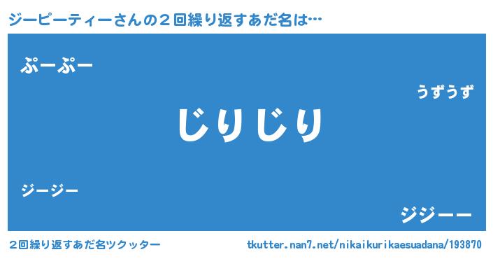 | 意味不明あだ名 | 『住所不定無職ジーピーティー(95歳)』 |