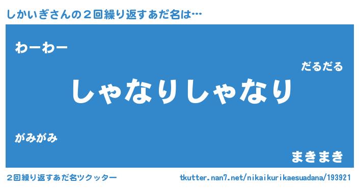 | 意味不明あだ名 | 『住所不定無職しかいぎ(53歳)』 |