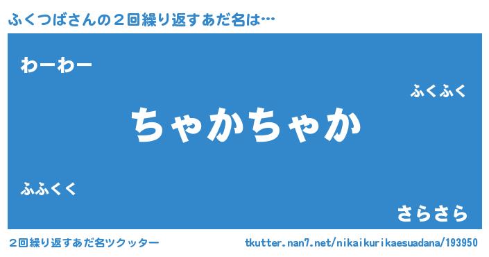 | 意味不明あだ名 | 『めかぶ科ふくつば属』『自称ふくつば』 |