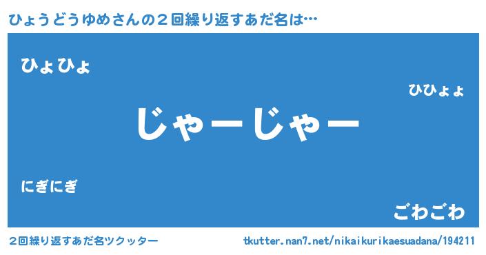| ヘコむあだ名 | 『ひょふぇ~』『ひょうどうゆめ(苦笑)』 |