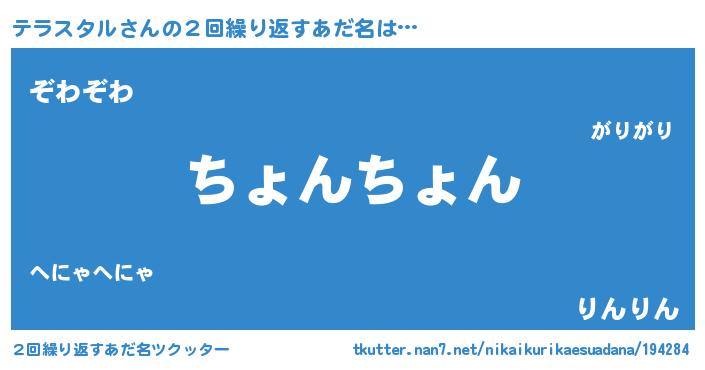 | 意味不明あだ名 | 『住所不定無職テラスタル(47歳)』 |