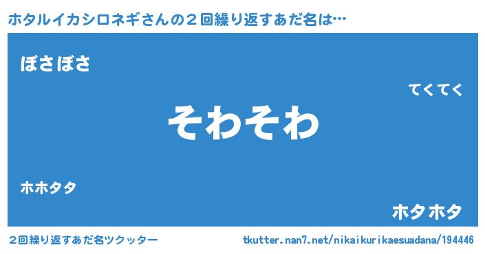 | 意味不明あだ名 | 『住所不定無職ホタルイカシロネギ(91歳)』 |