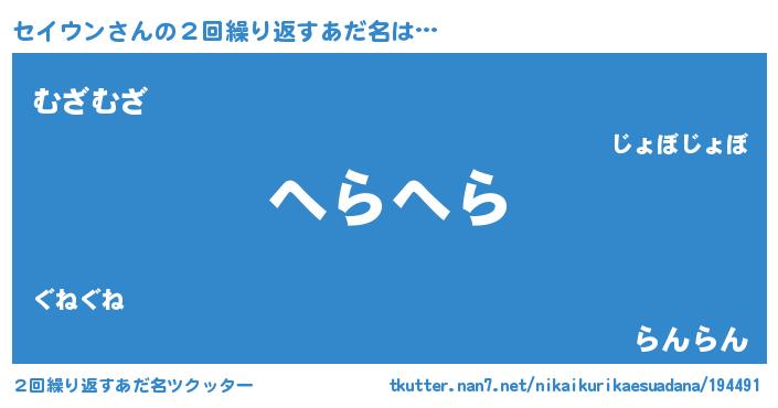| ヘコむあだ名 | 『セイウン(笑)』『セイっふぃ~』 |