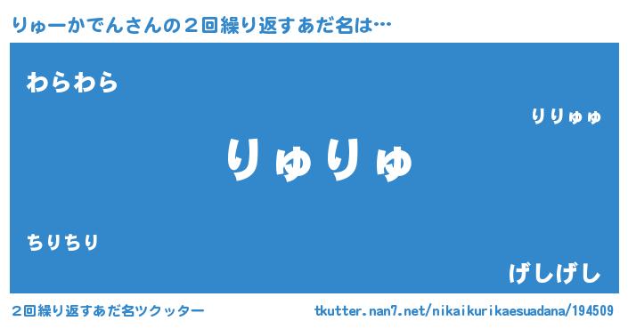 | ヘコむあだ名 | 『りゅにゅー』『りゅーかでん(笑)』 |