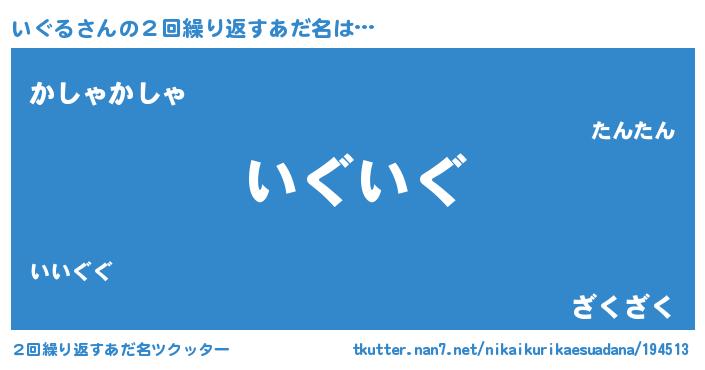 | 意味不明あだ名 | 『ペロリンいぐる』『永久保存いぐる』 |