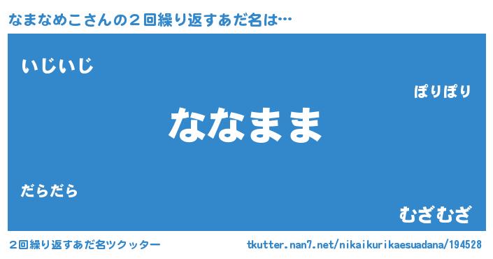 | 欧米人風あだ名 | 『なまなめこクリステル』 |
