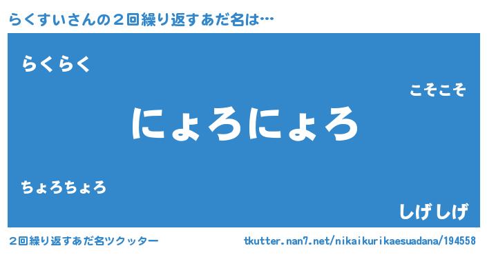 | 男性向けラノベタイトル風あだ名 | 『らくすいの嫁は女の子じゃないと思った?』 |