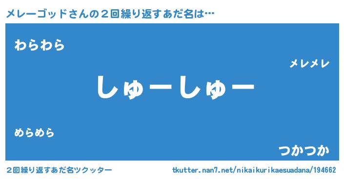 | 意味不明あだ名 | 『住所不定無職メレーゴッド(65歳)』 |