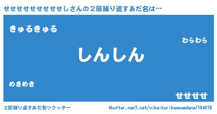 | 意味不明あだ名 | 『住所不定無職せせせせせせせせせし(10歳)』 |