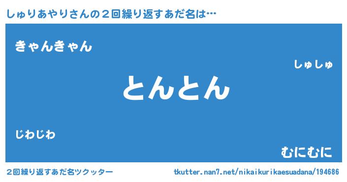 | ヘコむあだ名 | 『しゅりあやり(小並感)』『しゅっふぃ~』 |