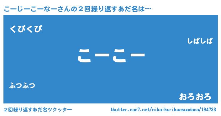 | ピコ太郎風あだ名 | 『ココ十郎』『ピココ郎』『コー四郎』 |