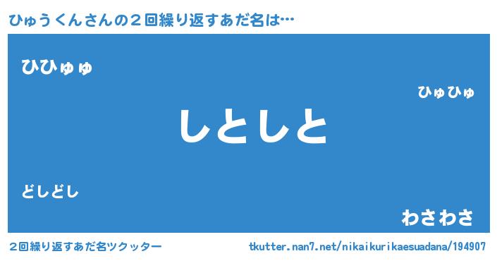 | 恥ずかしいあだ名 | 『ひゅっちょ』『プリティーひゅうくん』 |