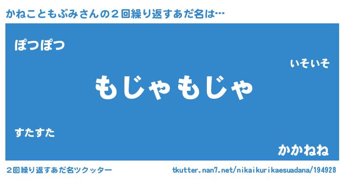 | 料理風あだ名 | 『ヘルシー!かねこともぶみのピリ辛酒蒸し!』 |