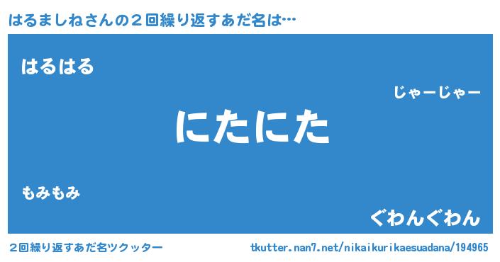 | 意味不明あだ名 | 『とにかく怪しいはるましね』 |