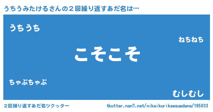 | ヘコむあだ名 | 『うちうみたける(笑)』『うちっふぃ~』 |