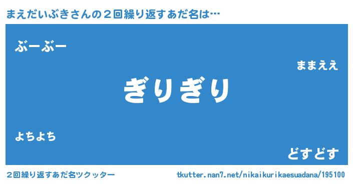 | ヘコむあだ名 | 『まえだいぶき(爆)』『つくし』 |