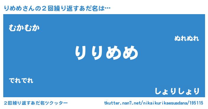 | 肩書あだ名 | 『りめめ国家主席』『りめめ総統』 |