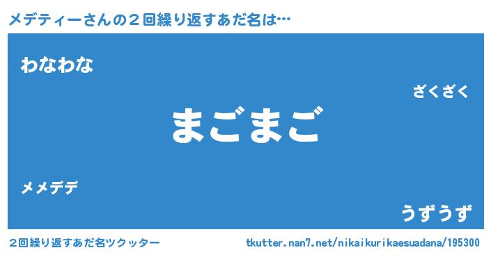 | 可愛いあだ名 | 『メデうちぇる』『メデぷりん』 |