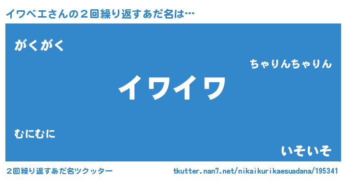 | 意味不明あだ名 | 『ペロリンイワベエ』『永久保存イワベエ』 |