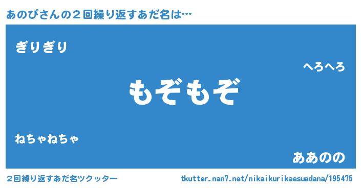 | 意味不明あだ名 | 『自称あのぴ』『永久保存あのぴ』 |