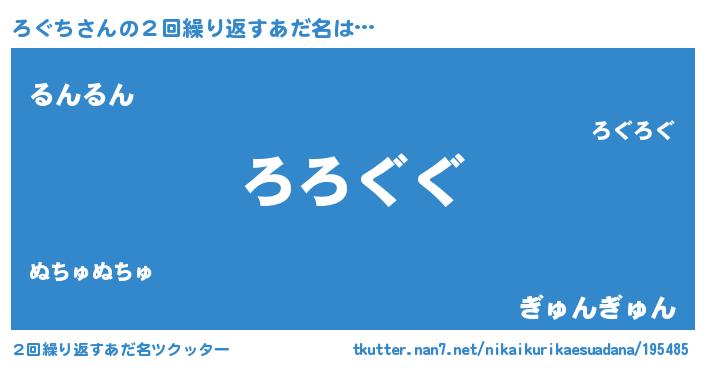| ヘコむあだ名 | 『豆乳』『ろぐち(笑)』『ろぐにゅー』 |