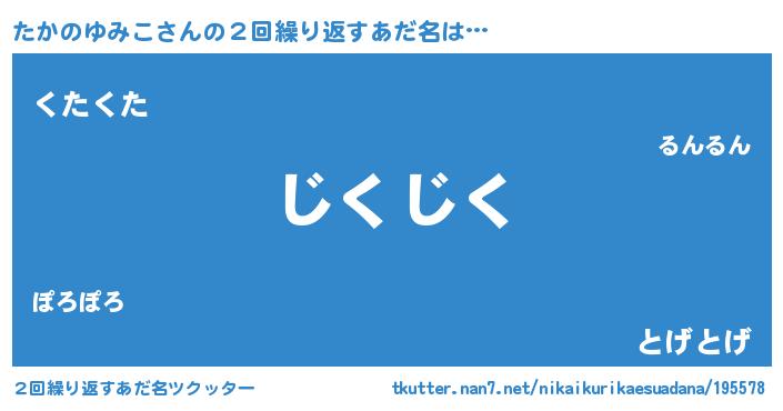 | 意味不明あだ名 | 『住所不定無職たかのゆみこ(98歳)』 |