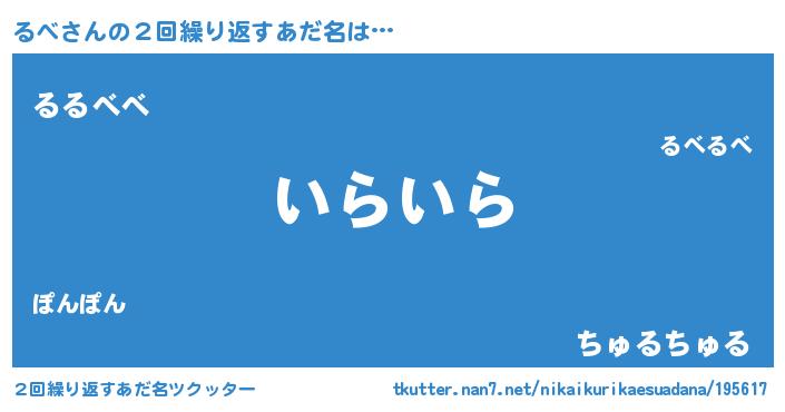 | 女子向けラノベタイトル風あだ名 | 『るべは平凡を望む』『るべ伯爵の花嫁』 |