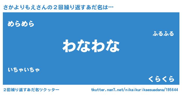 | ヘコむあだ名 | 『さかよりもえ(震え声)』『さかっぺ』 |