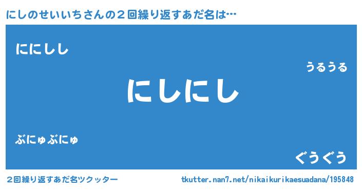 | ポケモン風あだ名 | 『ニシチュウ』『ニシノダネ』 |