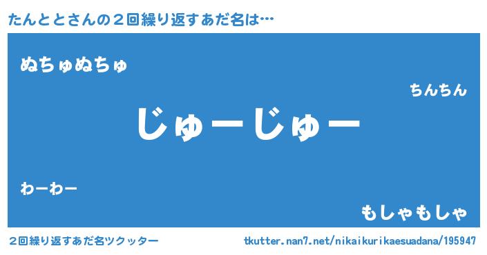 | 男性向けラノベタイトル風あだ名 | 『魔弾の王とたんとと』 |