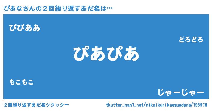 | 意味不明あだ名 | 『ペロリンぴあな』『ぴあなフォーエバー』 |
