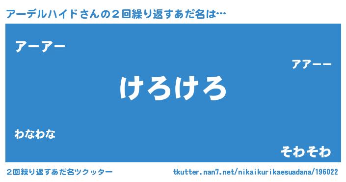 | 意味不明あだ名 | 『永久保存アーデルハイド』 |