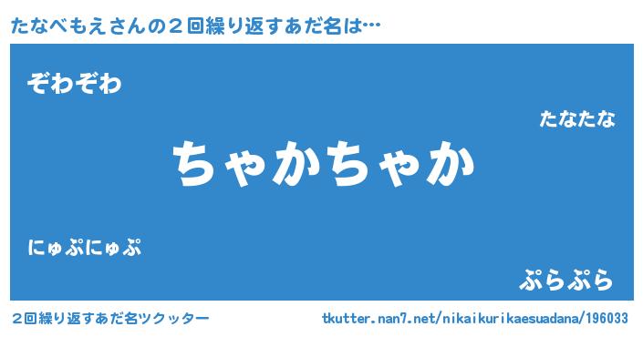 | 意味不明あだ名 | 『住所不定無職たなべもえ(43歳)』 |