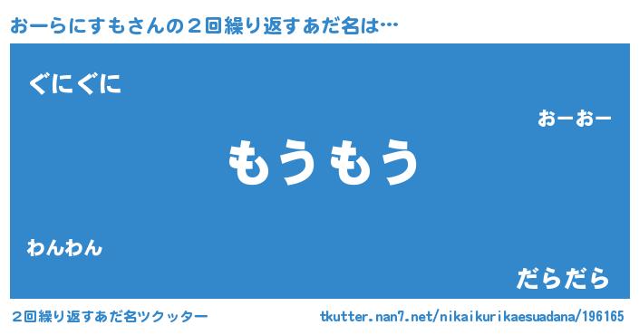 | 意味不明あだ名 | 『自称おーらにすも』 |
