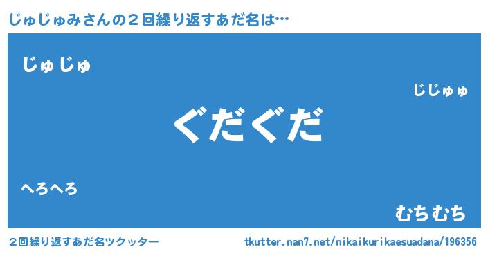 | 意味不明あだ名 | 『永久保存じゅじゅみ』『自称じゅじゅみ』 |