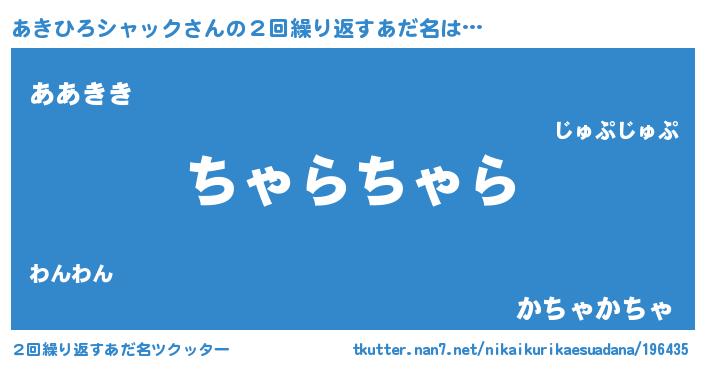 | 欧米人風あだ名 | 『あきひろシャック・ステッグマイヤー』 |
