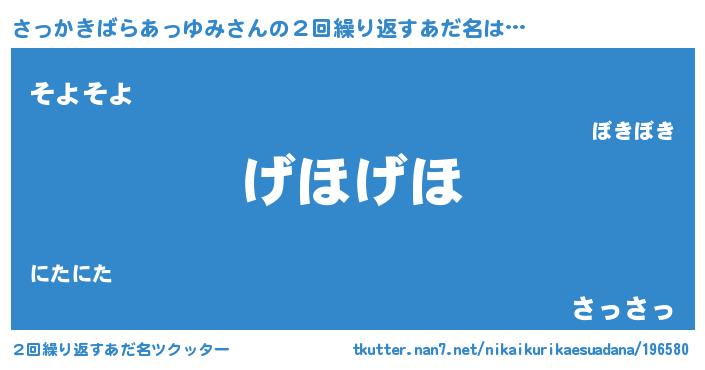 | 意味不明あだ名 | 『永久保存さっかきばらあっゆみ』 |
