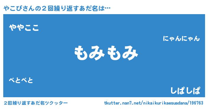 | 男性向けラノベタイトル風あだ名 | 『Re:やこぴから始める異世界生活』 |