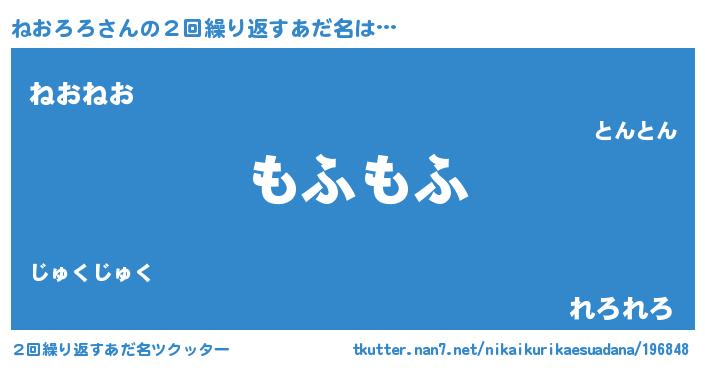 | 男性向けラノベタイトル風あだ名 | 『Re:ねおろろから始める異世界生活』 |