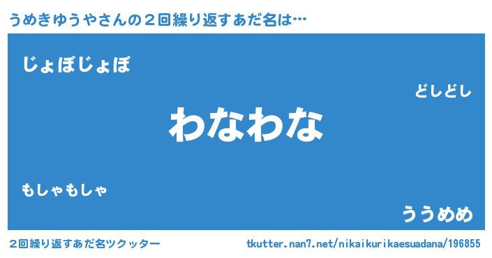 | 男性向けラノベタイトル風あだ名 | 『うめきゆうや~年齢イコール彼女いない歴の魔法使い~』 |