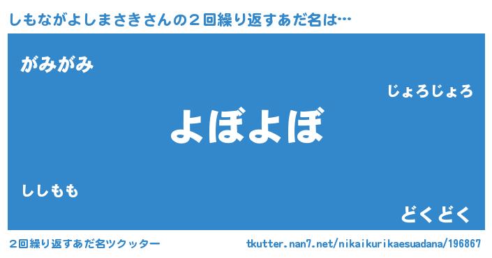 | ヘコむあだ名 | 『しもながよしまさき(笑)』『つくし』 |
