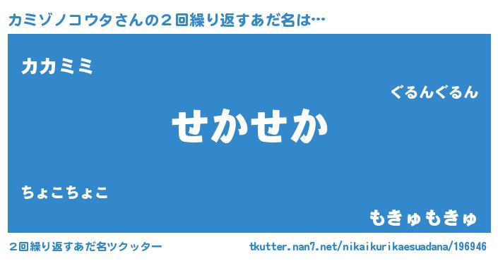 | 意味不明あだ名 | 『住所不定無職カミゾノコウタ(4歳)』 |