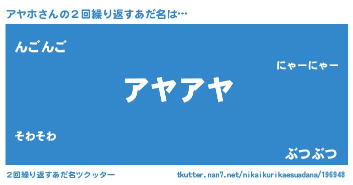 | ピコ太郎風あだ名 | 『アコ二郎』『アア太郎』『アヤ六郎』 |