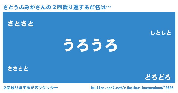 | 欧米人風あだ名 | 『ウサインさとうふみか』 |